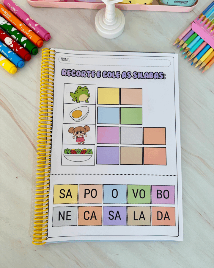 Arquivo Recorte e Cole as Silabas, ideal para trabalhar palavras de